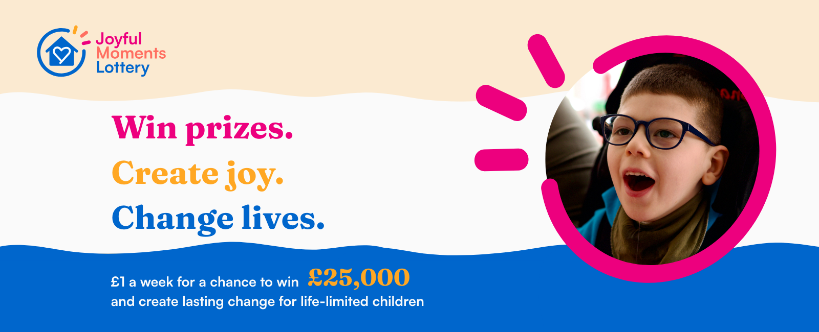 By playing, you’re not only in with a chance of winning £25,000, you’re helping to create more moments of joy for families with life-limited children.